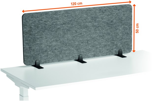 • Ideaal voor in hoogte verstelbare tafels: stabiele bevestiging bij het verstellen van de tafel en de privacy hoogte van 50cm blijft behouden.