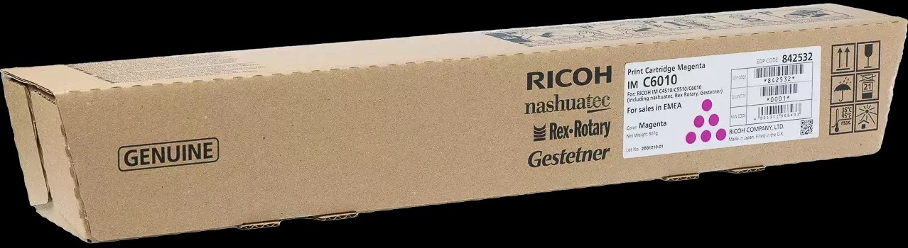 • Print gegarandeerd zonder problemen met de originele cartridges van Ricoh.