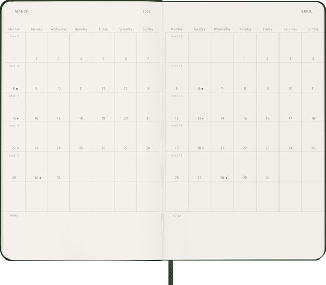 Agenda 2027 Moleskine 12M Planner Weekly 7dagen/1pagina large hc myrtle green