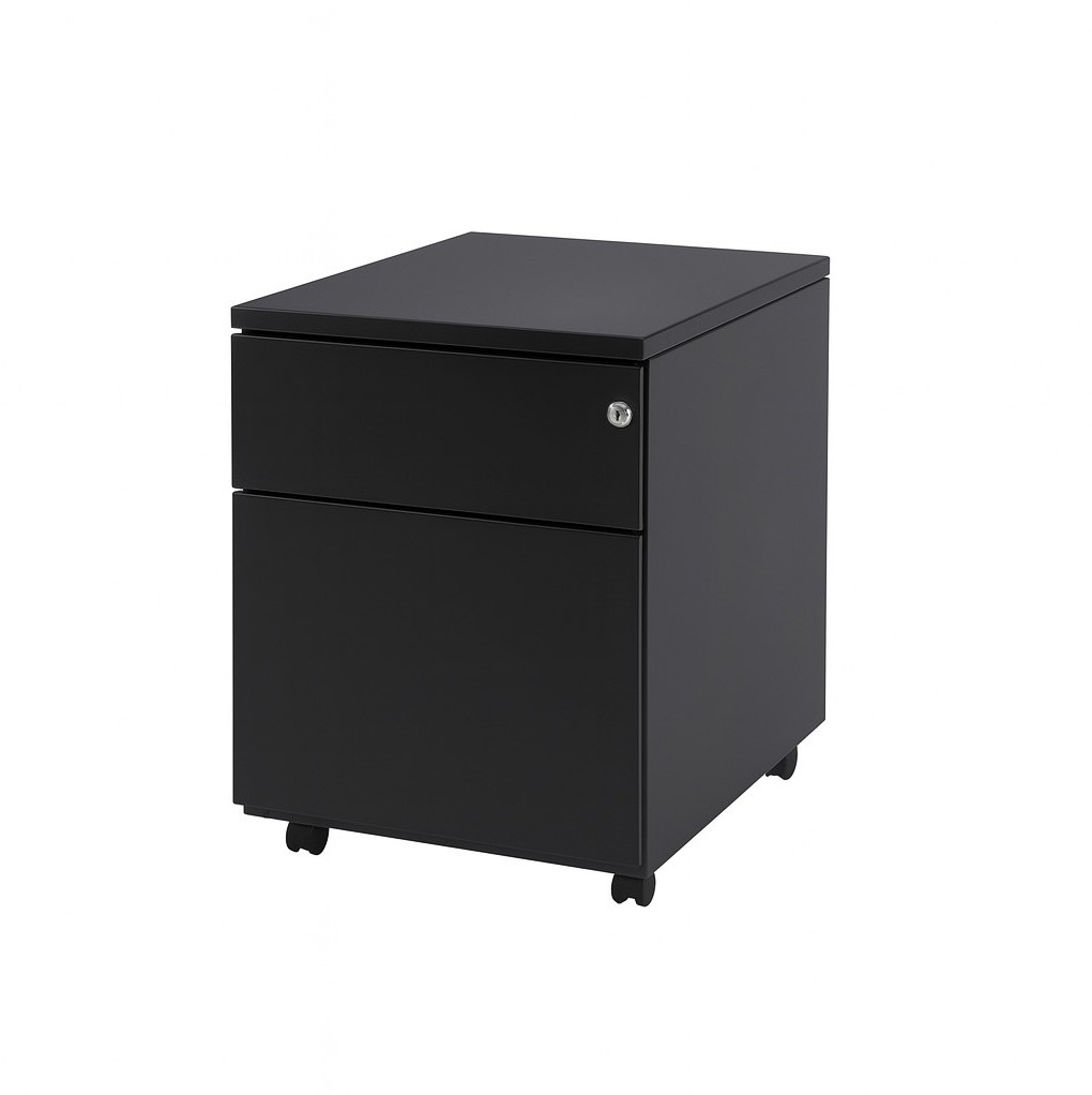 Huislijn rolblok no.02, 1 lade met pennenbak, 1 hangmappenlade, metalen top, ZW - Zwart RAL9005.