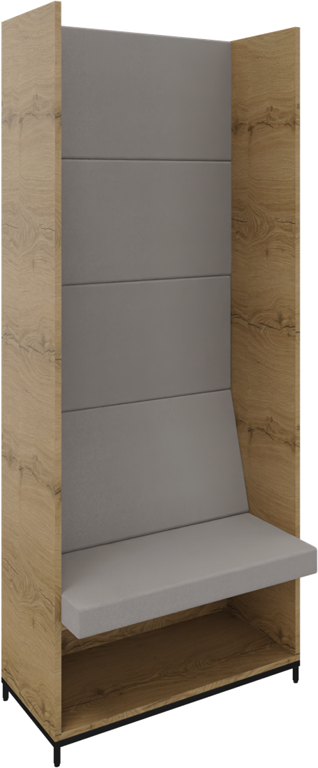 Huislijn flexwall zitbank 5 OH op metalen 4-poots sokkel en ondervak achter dicht incl. zit/rug kussenset.