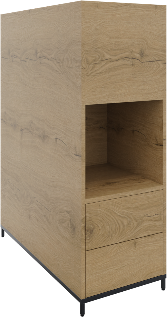 Huislijn flexwall plantenkast op 4-poots sokkel 43brx124hgx90dp, 2-vaks dichte achterzijde, 4 x uittreklade.
