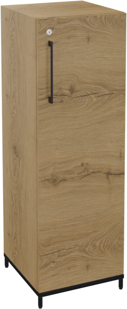 Huislijn flexwall kast 3 OH op metalen 4-poots sokkel 41 br x 124 hg x 43 dp met 1 x draaideur en 2 legborden.
