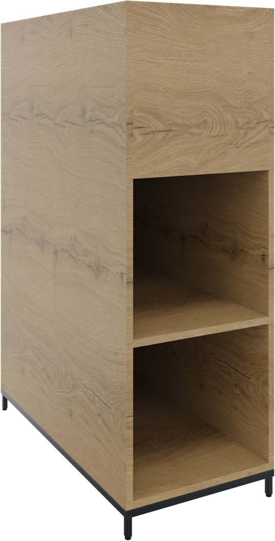 Huislijn flexwall plantenkast 3OH op metalen 4-poots sokkel 43 br x 124 hg x 84 dp, 2-vaks dichte achterzijde.