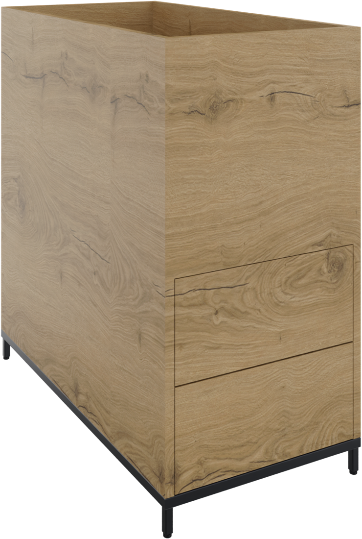 Huislijn flexwall plantenkast op 4-poots sokkel 43brx85hgx80dp, 2-vaks met 4 x uittreklade, push to open.