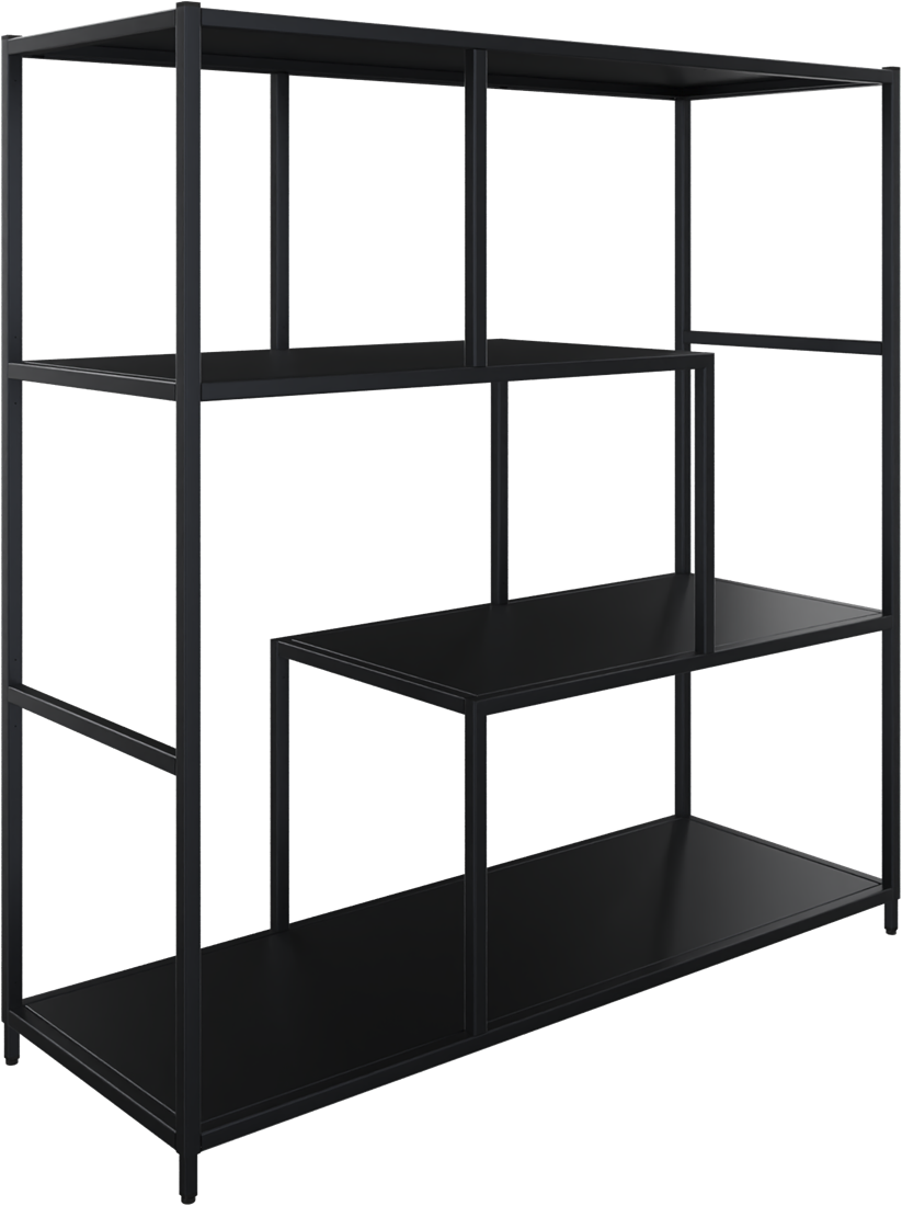 Huislijn flexwall frame 124 hg x 119 br x 43 dp, indeling 4-vaks en inclusief 4 legborden asymetrisch.