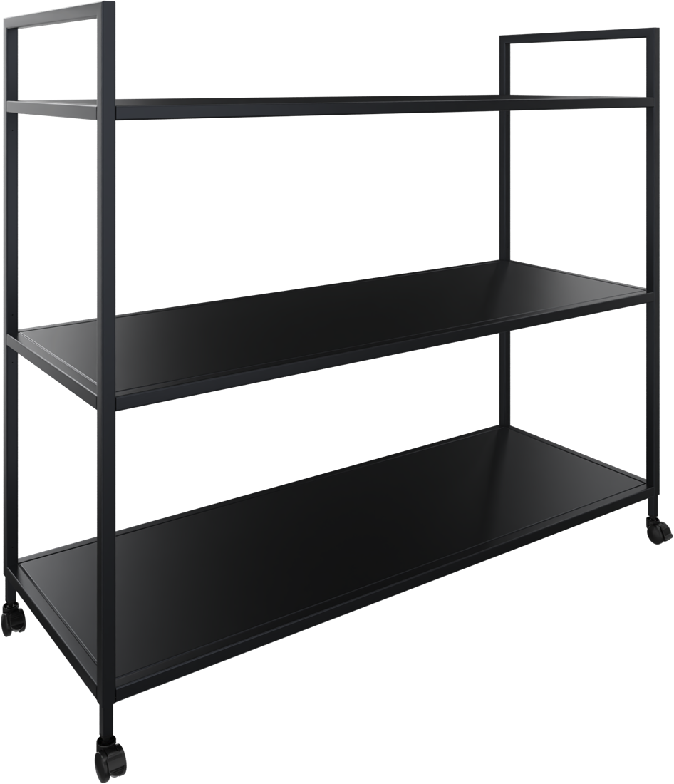 Huislijn flexwall trolley 89/113 hg x 119 br x 43 dp, indeling 2-vaks en 3 legborden, op 4 wielen met rem.