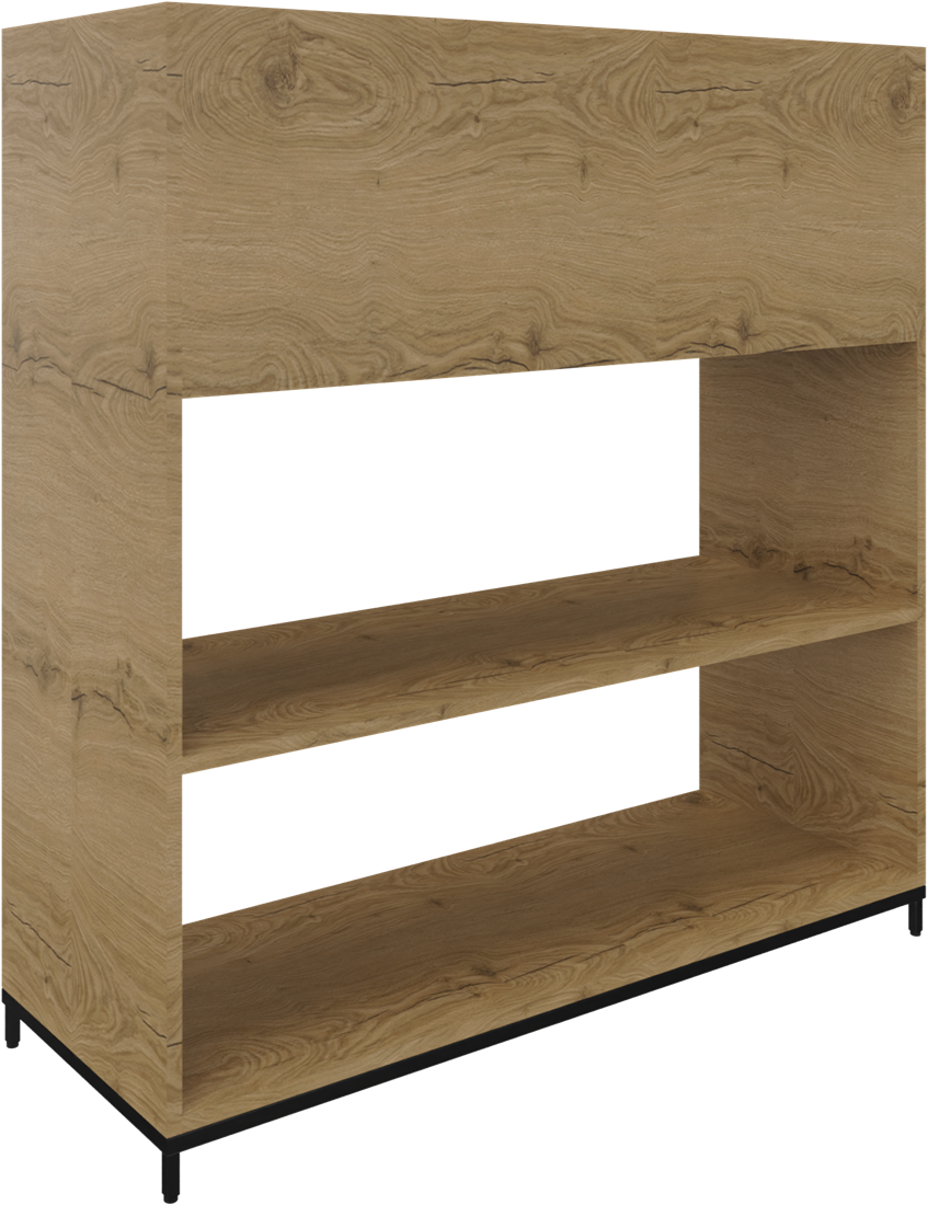 Huislijn flexwall plantenbak 3OH op metalen 4-poots sokkel 119 br x 124 hg x 43 dp met 2-vaks volledig open.