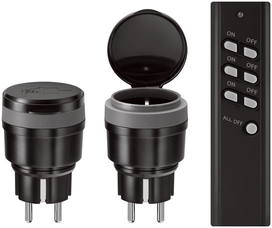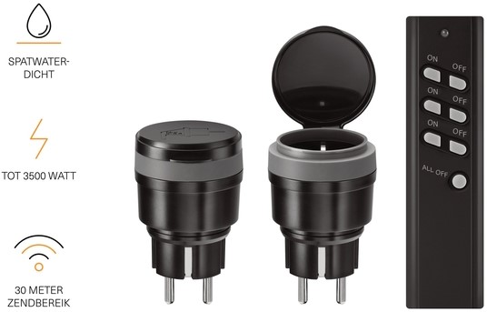 Stekkerschakelaarset voor buiten KlikAanKlikUit 3500W AGC2-3500R zw