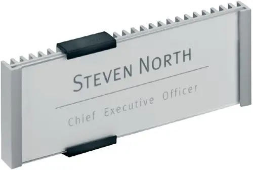 • Deurbordje met aluminium rand en niet-reflecterend acrylplaatje.