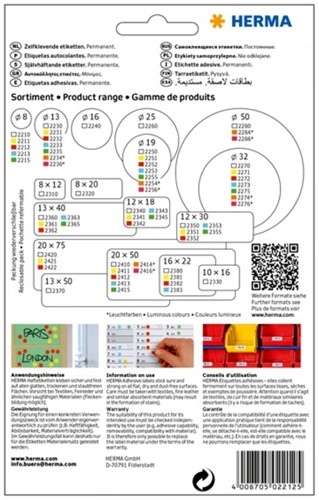 Tags RONDE ETIKETTEN LABEL STICKER 109202 13HER2212 6500882 (Herma) labels stickers kantooretiketten ronde
