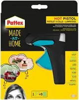 • Pattex Made at Home Hot Pistol – voor nauwkeurige, snelle en veilige verlijmingen. Geniet van meer lijmplezier met het lijmpistool van Pattex: voor alle doe-het-zelf klusjes, reparaties, decoraties en knutselwerkzaamheden. De combinatie van het hoge smeltvermogen van de Hot Pistol en de mogelijkheid tot een nauwkeurige applicatie, zorgt voor een snel en aangenaam werkproces. De lijmpatronen zijn binnen 8-10 minuten optimaal opgewarmd voor gebruik en de definitieve eindsterkte wordt na ongeveer 2 minuten bereikt. De universele lijm is geschikt voor verschillende materialen (1). De lijmpistool is zeer geschikt voor hout, papier, leer, textiel, kurk, glas, metaal en kunststof. Het geïsoleerde siliconen mondstuk maakt precieze applicatie mogelijk en de brede antislip-staander garandeert veilig werken.