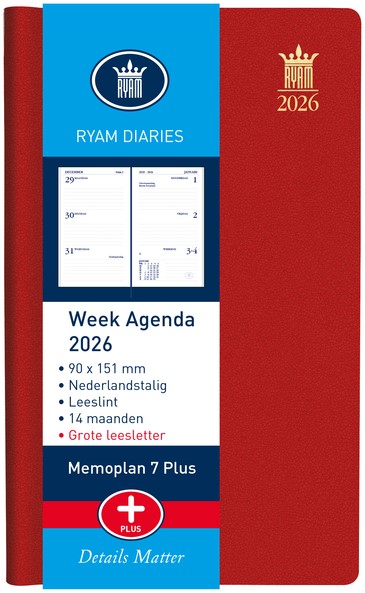 Agenda 2026 Ryam Memoplan 7 Plus Mundior 7dagen/2pagina's assorti