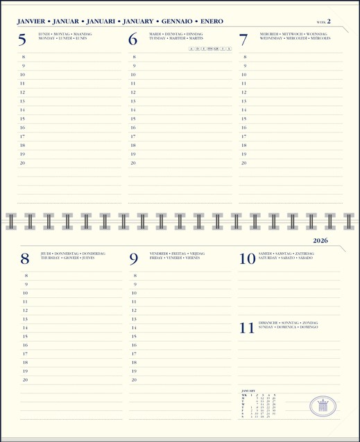 Agendavulling 2026 Ryam Memoplan 7 Compact 7 dagen/2pagina's landscape crème