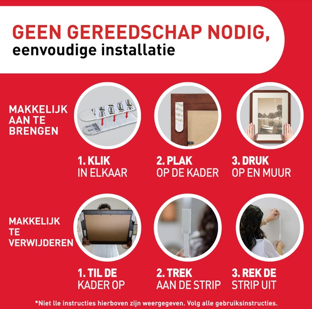 • Houd lijsten vlak en veilig aan de wand; de onopvallende strips blijven verborgen achter de lijst.