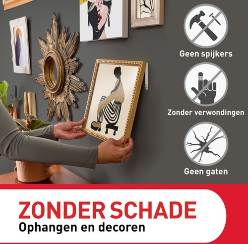 • Hangt zonder beschadigingen op, hecht stevig en laat na verwijderen geen sporen achter.