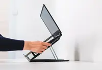 Met de Ergo-Q 330 creëer je in een handomdraai een gezonde en productieve werkplek. Klap je Ergo-Q 330 uit vanuit zijn compacte positie, kies de voor jou optimale hoogte uit een van de zes verschillende hoogte-instellingen en bevestig de beugel in een van de sleuven aan de achterkant. De geïntegreerde documenthouder klap je moeiteloos uit, zodat je je laptop er gemakkelijk in kunt plaatsen. De stabiele basis en de antislipvoetjes aan de onderzijde beloven een stevige werkopstelling voor op elk oppervlak.