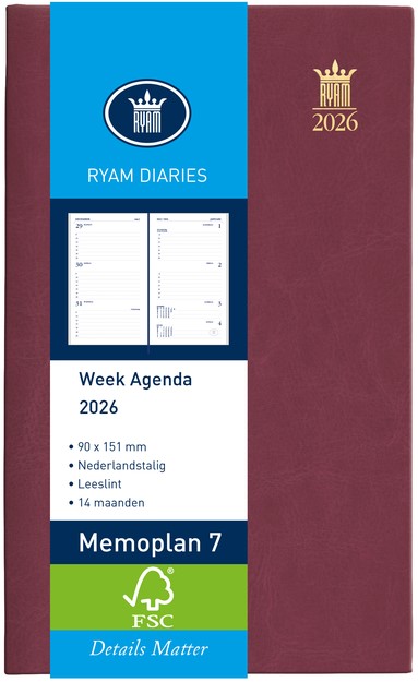 Agenda 2026 Ryam Memoplan 7 Mundior 7dagen/2pagina's bordeaux