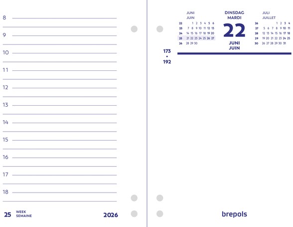 Omlegblok 2026 Brepols 1dag/2pagina's universele ponsing