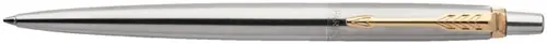 • De Parker Jotter Stainless steel balpen heeft een vakkundig vervaardigde rvs body, gecomplementeerd met een vergulde pijlpuntclip.
