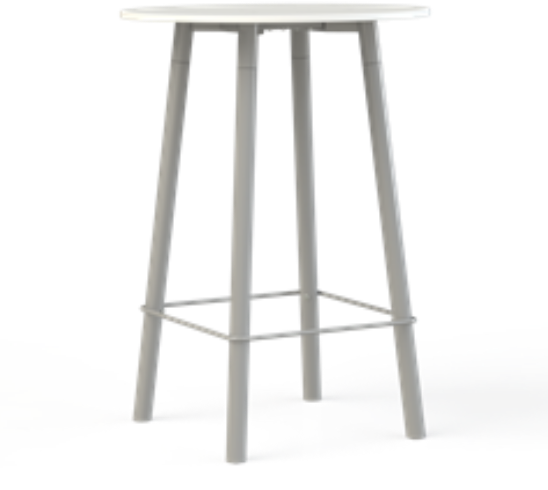 Hoge tafel Corner heeft een vaste hoogte van 110cm en heeft een diameter van 80cm. De tafel is leverbaar met drie verschillende kleuren frames en vier verschillende kleuren blad.
