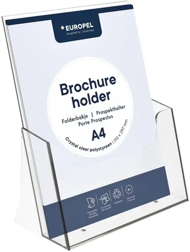 • Folderbakje voor een glasheldere presentatie van folders, catalogi en prijskaarten.