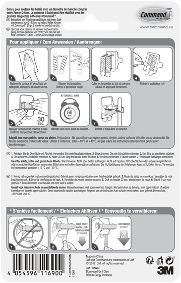 • De Command™ Bezemhouder is onze innovatieve oplossing voor het opbergen van bezems en vloerwissers als die niet in gebruik zijn. Ze hechten sterk en laten na verwijdering geen sporen achter dankzij de 3M rekontgrendelingstechnologie.