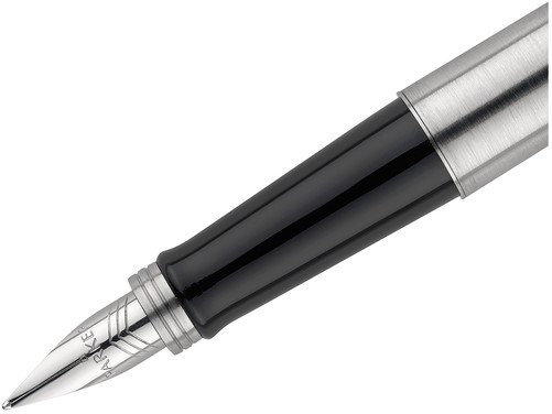 Vulpen Parker Jotter Stainless Steel CT verpakt in een blister. Jotter staat bekend als een authentiek designicoon van de laatste 60 jaar. Het heeft naast begerenswaardige kleuren en een opvallende vorm de kenmerkende pijlclip van Parker, een embleem van de geschiedenis van Parker. De hoogwaardigere Jotter vulpen is nu beschikbaar in zes prachtige afwerkingen die passen bij de meest verkochte Jotter balpennen. Het is opnieuw ontworpen voor een hoogwaardige en modernere look: - Het profiel van de schacht is aangepast om bij de Jotter balpen te passen - Geüpdatete pijlclip - Afgeronde bovenkant - Metalen ring met 3 banden op de huls - Afbeelding met 3 pijlen op de punt.