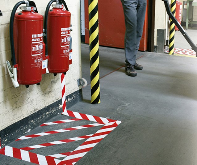 • tesa® Waarschuwingstape Universal is een multifunctionele markeertape die ideaal is om zichtbare veiligheidsbarrières te creëren en kan worden gebruikt om permanente obstakels of gevarenzones te markeren.