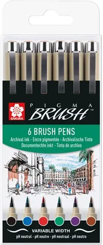 • De Pigma brushpennen set bevat 6 flexibele penseelpunten welke na gebruik eenvoudig weer in zijn originele vorm buigen.