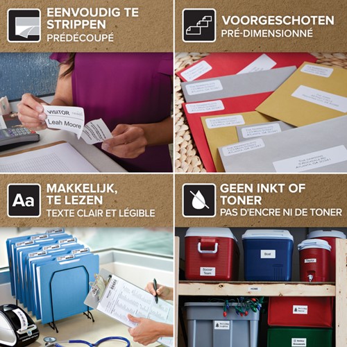 • De Dymo LW labels zijn verkrijgbaar in verschillende formaten.