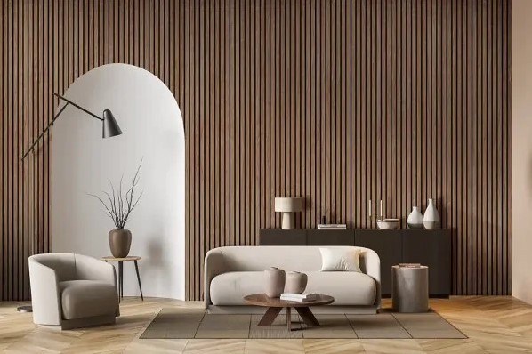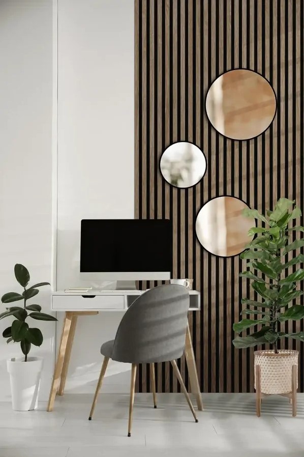 - Standaard keuze uit zes lattenwanden met zwarte PET-vilt als achtergrond,