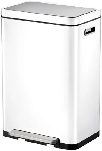 Stijlvolle rechthoekige pedaalemmer met extra breed pedaal, kunststof binnenemmer, gedempt sluitend deksel en stay-open functie. De pedaalemmer van geborsteld RVS is voorzien van fingerprint proof coating en nano zilver anti-bacteriële coating. De siliconen afdichtingsring zorgt voor het effectief vasthouden van nare luchtjes in de afvalbak. Tevens zit er een ingebouwd geurfilter in het deksel. De opklapbare rand houdt de bak open voor het makkelijk verwisselen van de afvalzak en/of het uitnemen van de binnenemmer.