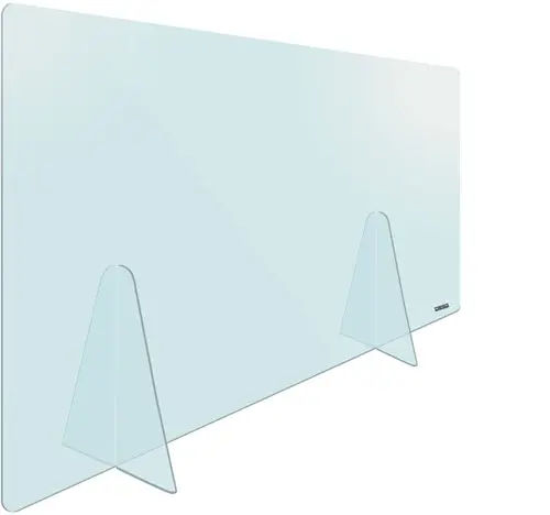 Dit preventiescherm maakt het in (vergader)ruimtes voor mensen mogelijk om op een veilige en zekere manier tegenover elkaar te werken en te communiceren.