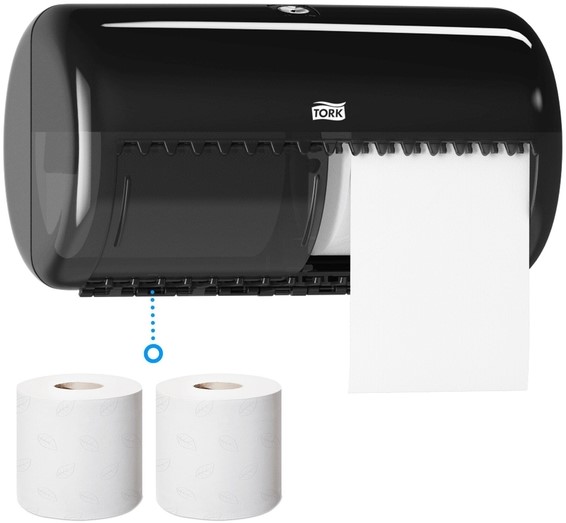 • De Tork toiletpapier dispenser T4 zwart biedt toiletten met beperkte ruimte een compacte oplossing.