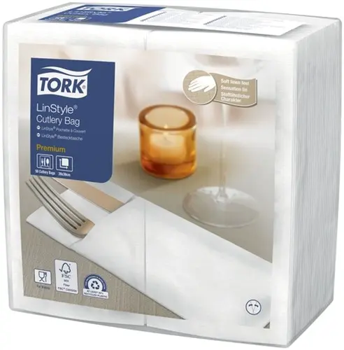 Servetten Tork 509600 LinStyle Pochette 19.5x9.8cm wit 50st