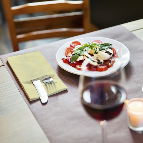 • Omdat de servetten reeds zijn voorgevouwen tot pochette besparen ze het personeel veel tijd bij het dekken van de tafels.