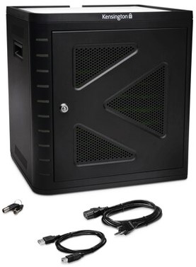 • De Kensington Charge and Sync Cabinet is de perfecte oplossing om maximaal 10 iOS- of Android-tablets te laden, synchroniseren en beveiligen. Dankzij de verstelbare laden kan je in elk compartiment een tablet met een stevige beschermhoes kwijt. De sabotagebestendige, wegklapbare voordeur zorgt voor bescherming en is voorzien van een instelbare sleutel, en met de bijgeleverde bevestigingsplaat of het kabelslot zorg je ervoor dat de kast op zijn plaats blijft. Er kunnen maximaal drie kasten worden gestapeld, zodat je maximaal 30 tablets kan laden, synchroniseren en beveiligen. Voeg meer functionaliteit toe met een wandmontageset, mobiele basis op wielen en Lightning- en micro USB-laad/synchronisatiekabel.