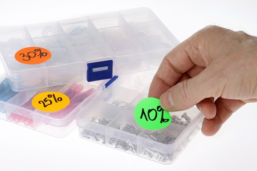 CategorieRillprint etiketten rond in kartonnen dispenser