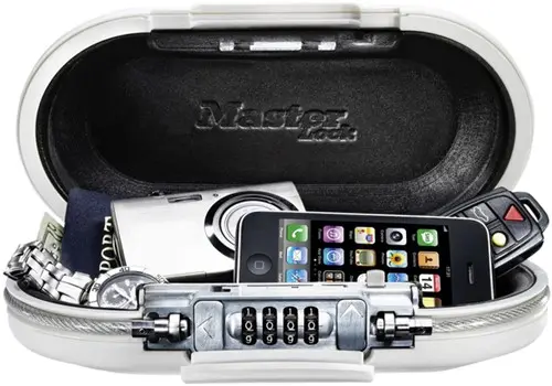 Draagbare kluis Master Lock Safe space met combinatieslot en kabel wit