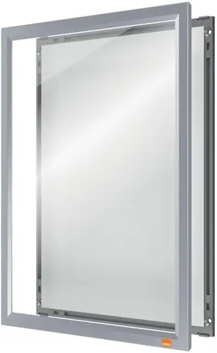 • Deze aan de wand gemonteerde poster clicklijst heeft een stijlvol, onopvallend frame, naadloos in verstek gezaagde hoeken en een innovatief mechanisme voor het vervangen van de inhoud. Verwijder eenvoudig het voorste displaypaneel, verwissel de inhoud achter de transparante afdekplaat en plaats het displaypaneel terug met het eenvoudige clicklijst mechanisme.