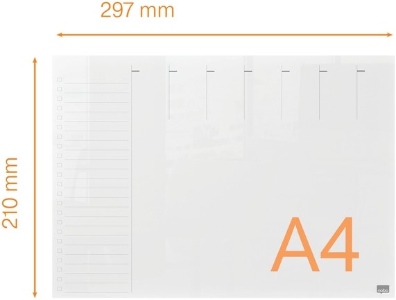 • Dankzij het transparante, randloze ontwerp gaat het memobord naadloos op in de achtergrond wanneer het niet in gebruik is.