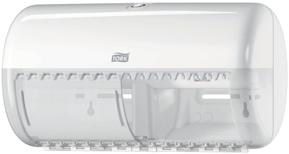 • De Tork toiletpapier dispenser T4 wit biedt toiletten met beperkte ruimte een compacte oplossing.