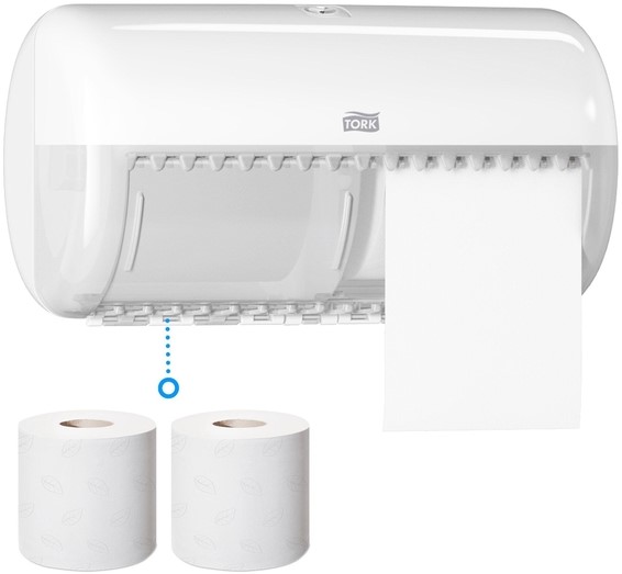 • Er is in de toiletpapierdispenser ruimte voor twee rollen.