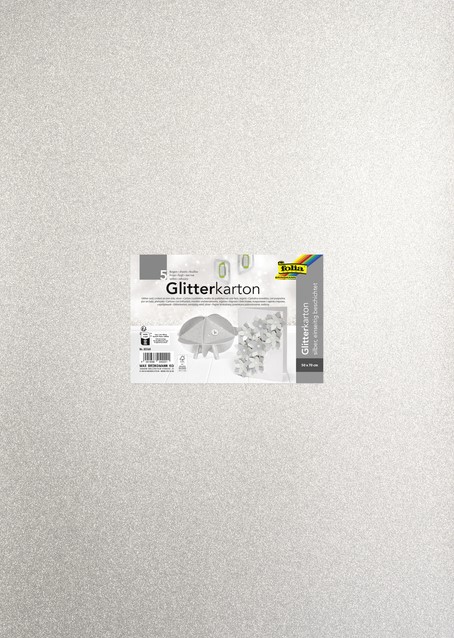 • Enkelzijdig gekleurd fotokarton met glittereffect in de kleur zilver .