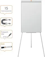 • De stalen flipover met driepootstatief heeft een modern, onopvallend en smal frame waardoor de ruimte van het bord wordt gemaximaliseerd, met de ruime pennengoot geplaatst onder het bord zonder de schrijfruimte te blokkeren. Het driepootstatief kan in hoogte worden aangepast of worden ingetrokken om het bord op te bergen of te verplaatsen. Magnetisch whiteboardoppervlak met stalen oppervlakte biedt een verhoogde uitwisbaarheid.
